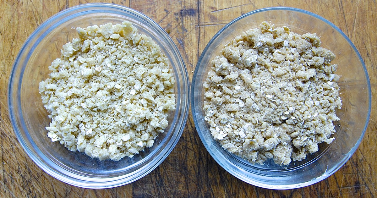 That's streusel made with all-purpose flour on the left, and with golden whole wheat on the right. There's a very slight color difference.