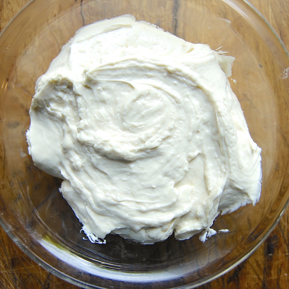 Stir or beat slowly just until combined; a few scattered small lumps are OK. Refrigerate the filling while you make the batter.