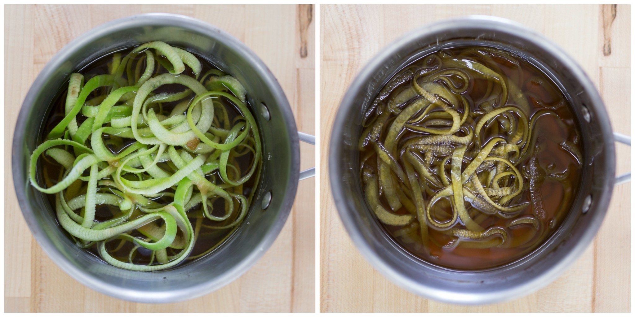Strain the syrup to remove the apple peels. Stir in 1 tablespoon lemon juice and 1 tablespoon boiled cider, if you're using it.