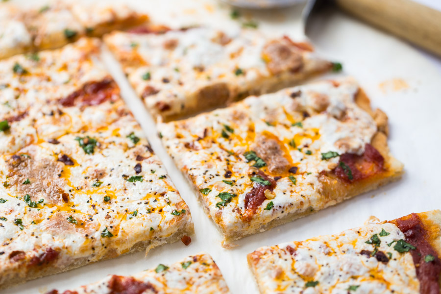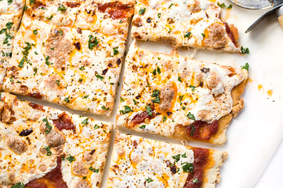 And today we've got a brand new pizza recipe for you! We took our Super-Fast Thin-Crust Pizza and turned it into a crispy gluten-free version.