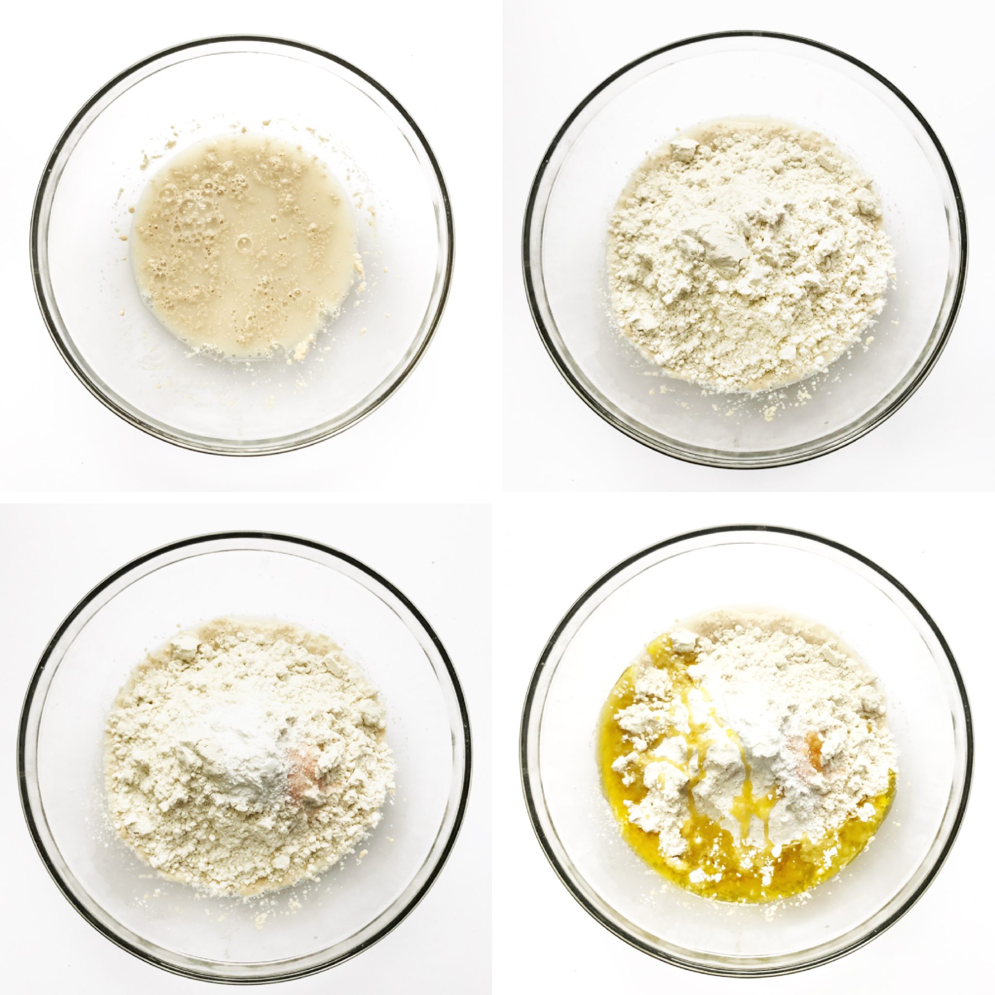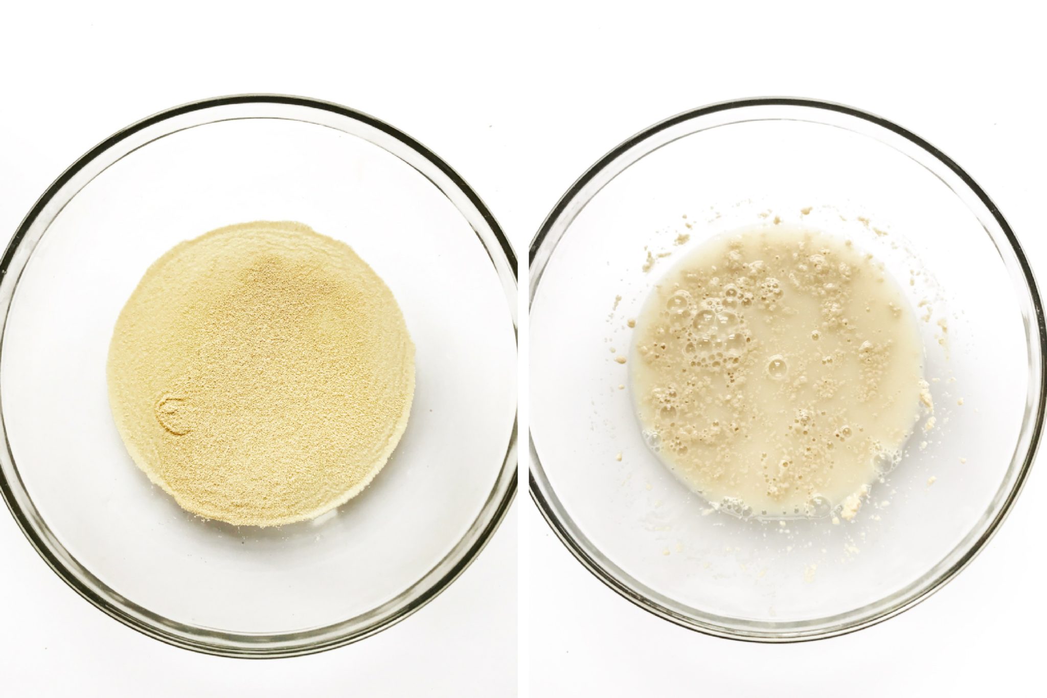 In a medium-sized bowl, whisk together 2/3 cup (152g) lukewarm water and 1 1/2 teaspoons instant yeast (or active dry) until the yeast dissolves.
