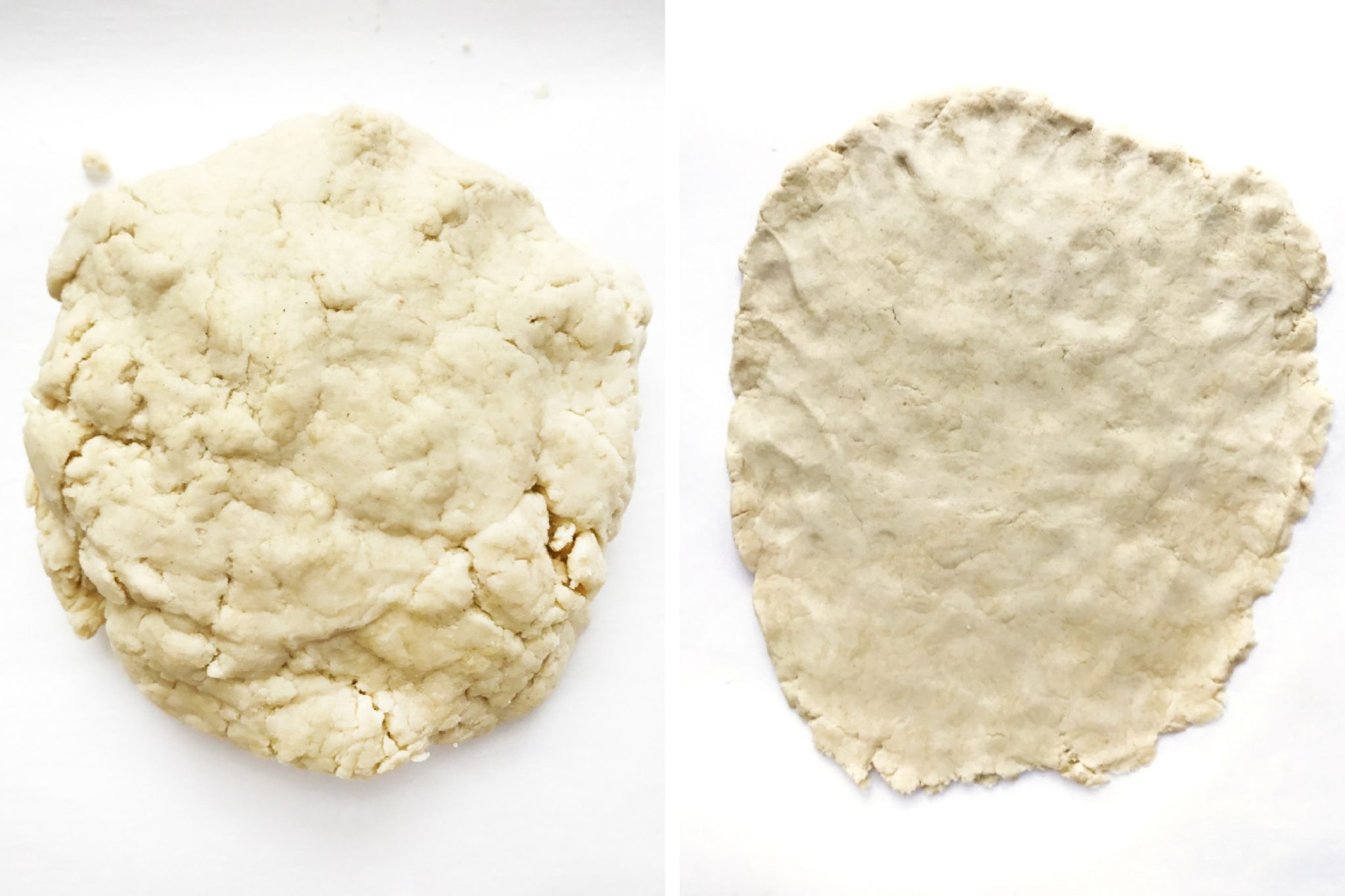 Divide the dough in half, pat each half into a disk, and place on a lightly floured piece of parchment or waxed paper. Let the dough rest, covered, for 30 minutes, while your oven gets good and hot.