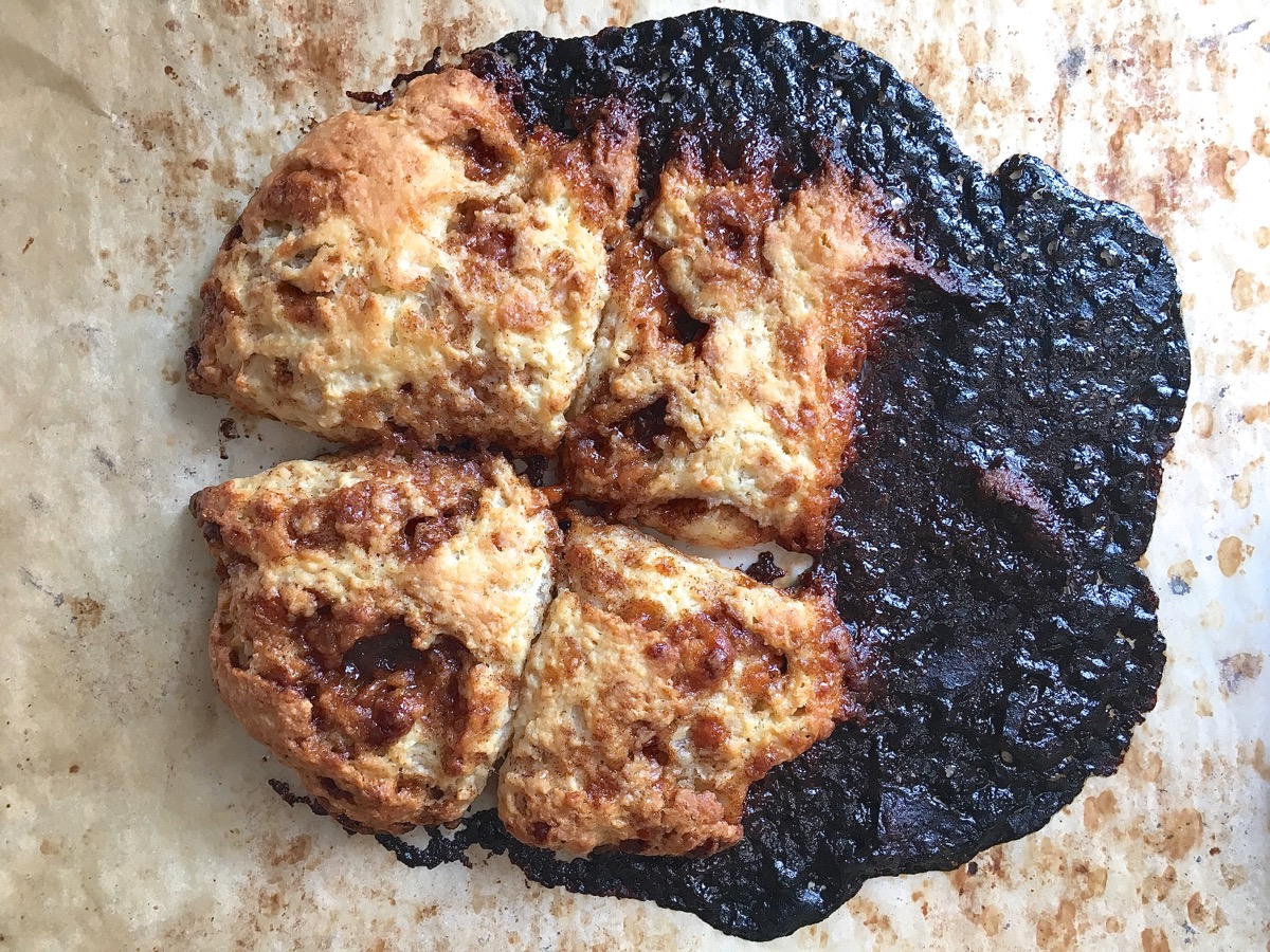 So, I decided to create a recipe for double-layer filled scones, and I needed to test various fillings, and most of them worked out just fine but my first attempt at cinnamon filling included maybe just a bit too much butter.