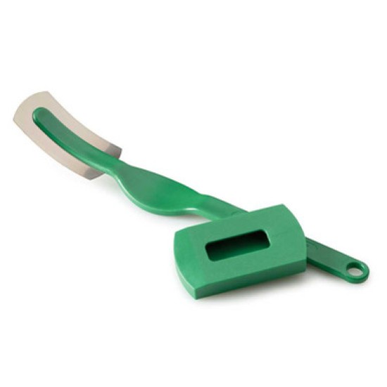 To score using a curved blade, hold the tool securely at about a 30-degree angle to the dough surface. This angle, in concert with the slight upward curve of the blade's cutting edge, will promote the formation of the small flap of dough.