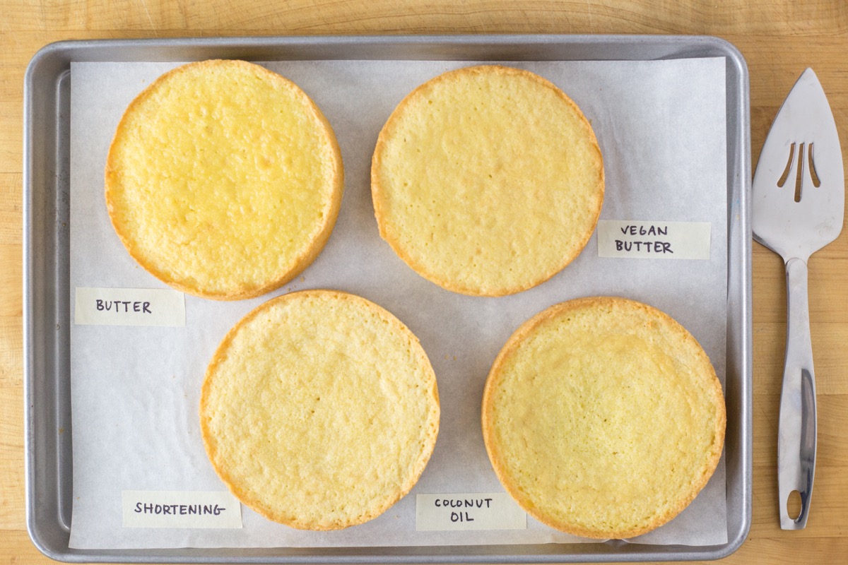 The flavor of the cake made with vegan butter was most similar to a dairy-based cake. We recommend using vegan butter as it provides the most consistent, delicious results.
