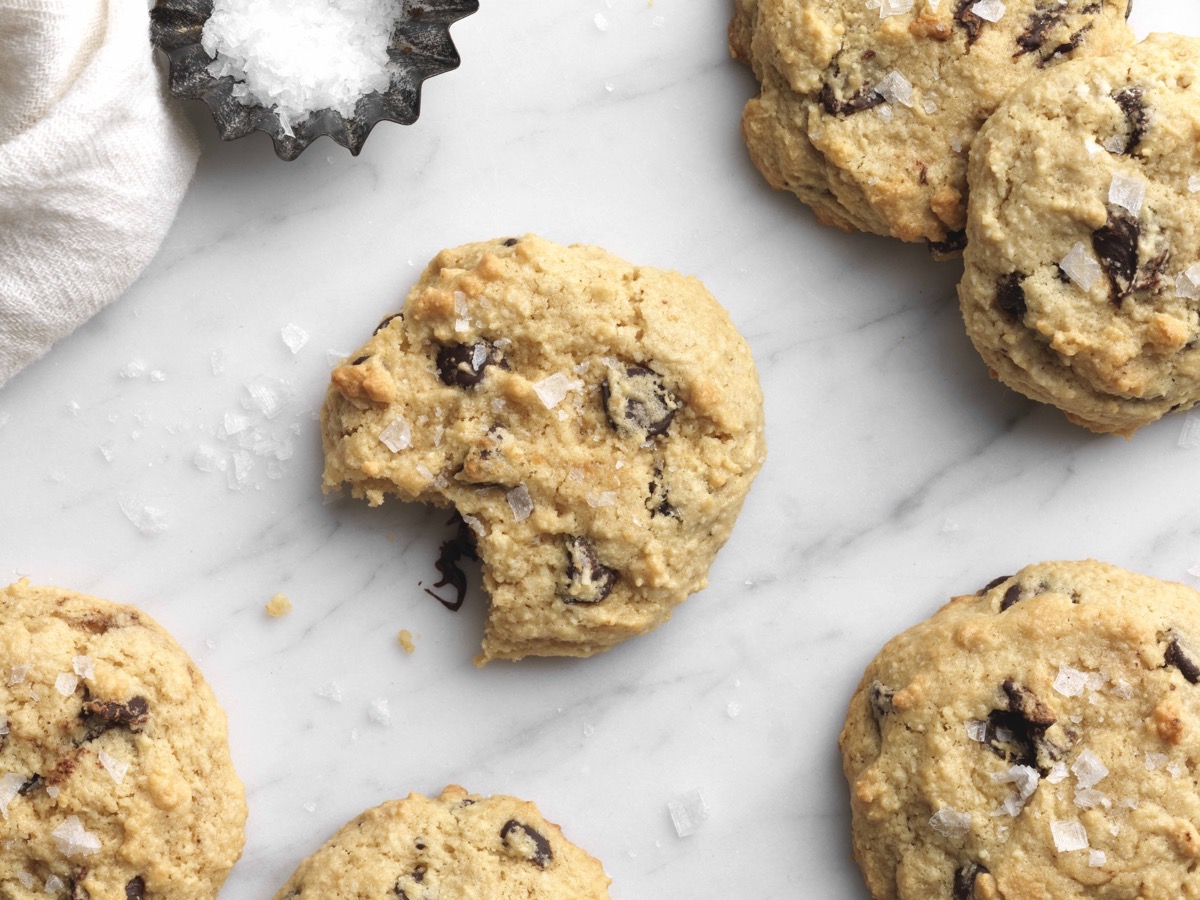 If your idea of the perfect chocolate chip cookie is one that’s soft enough to nearly melt in your mouth, yet has a nice bit of chew, and the perfect balance of chips to dough, then you’ll love these cookies. The fact that they’re special-diet friendly is an added bonus. Bring chocolate chip cookies to the office or on your family hike without disappointing your gluten-free co-worker or paleo cousin? You can do that!
