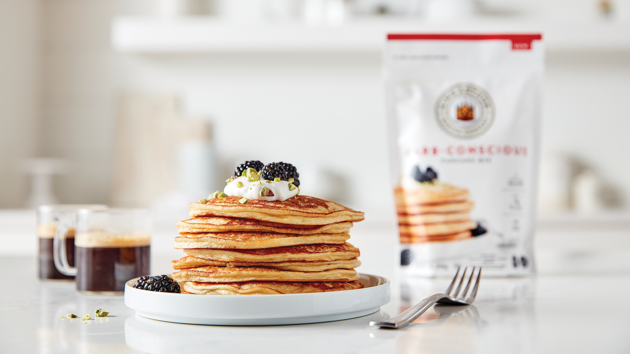 For those on a low-carb or keto diet, finding breakfast inspiration can be even more difficult while trying to keep carb intake in check. Which is why we introduced our Keto Wheat Pancake Mix — all you have to do is add water and you’re on your way to a satisfying meal of fluffy, low-carb pancakes that are just 2g net carbs and 9g of protein per serving (and no added sugar).