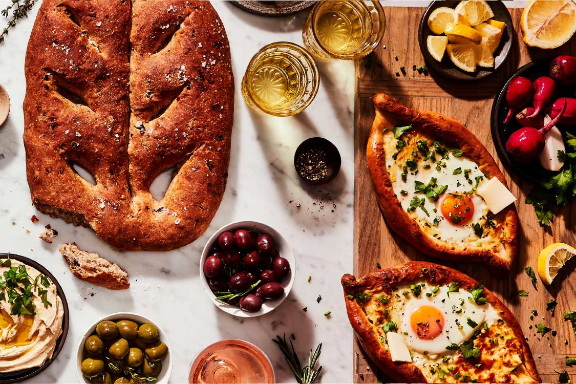 A classic dish from the country of Georgia, Khachapuri is a boat-shaped bread of bliss. Regional versions can be found across the country; this open-faced Adjaruli version, made with a cheesy filling and egg added in the second half of the bake, is likely the most familiar to Americans. The signature oval shape creates the perfect cradle for oozing, melty cheese, so it’s helpful to focus on getting it just right.