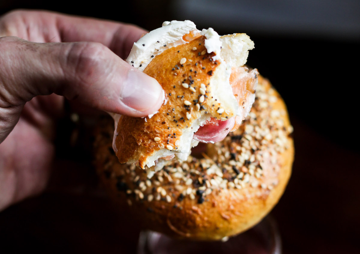 There’s a lot that goes into what makes a bagel a bagel, but one indispensable step to mention in any discussion of bagel technique is the boil: Just prior to baking, bagels get dunked into a boiling water bath for a minute or two on each side, without which you’d have nothing more than a doughnut-shaped roll. This serves to gelatinize the starches on the bagel’s exterior, which helps create the bagel’s signature leathery, glossy skin once it hits the heat of the oven.