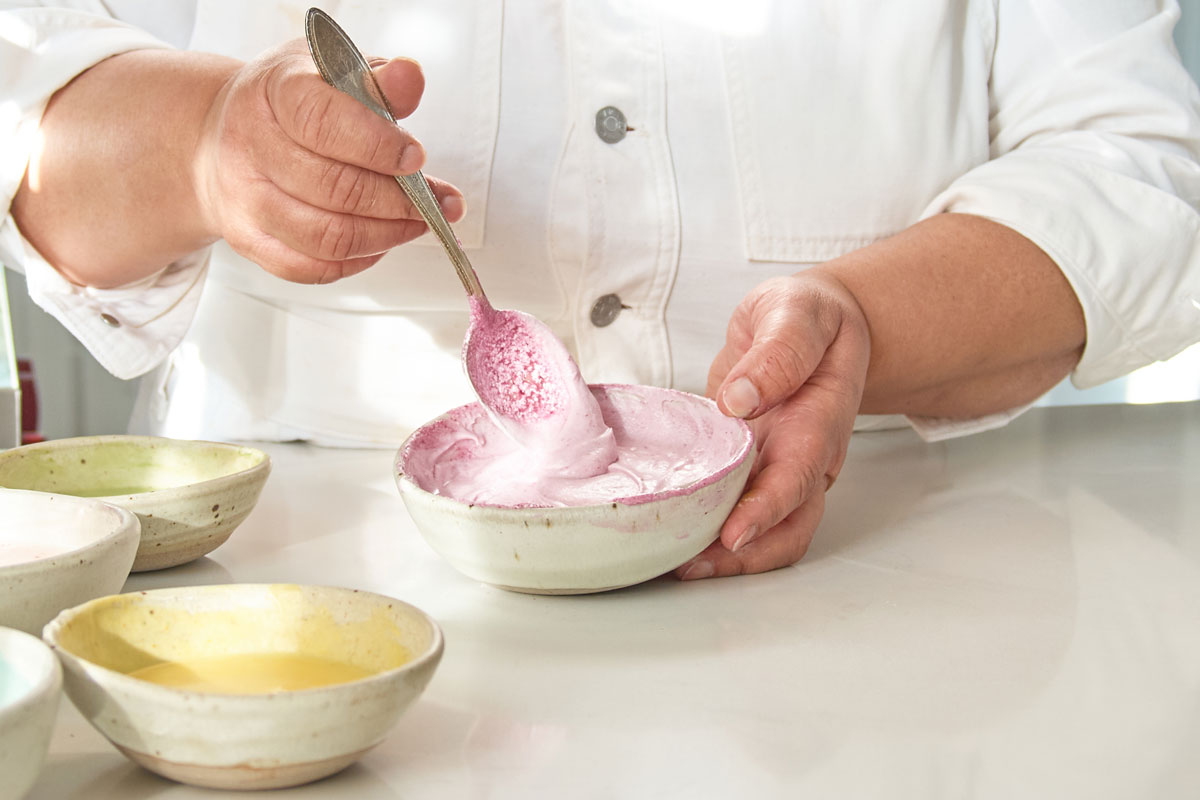 But Southern bakers are known for being resourceful, so I began to experiment with natural dyes like the ones my grandmother would have made. I used ingredients found in the grocery store produce aisle, such as freeze-dried strawberries, raspberries, blueberries, and even purple cabbage. The results are these colorful dyes — beautiful gifts of nature — that are as pretty to look at as they are delicious.