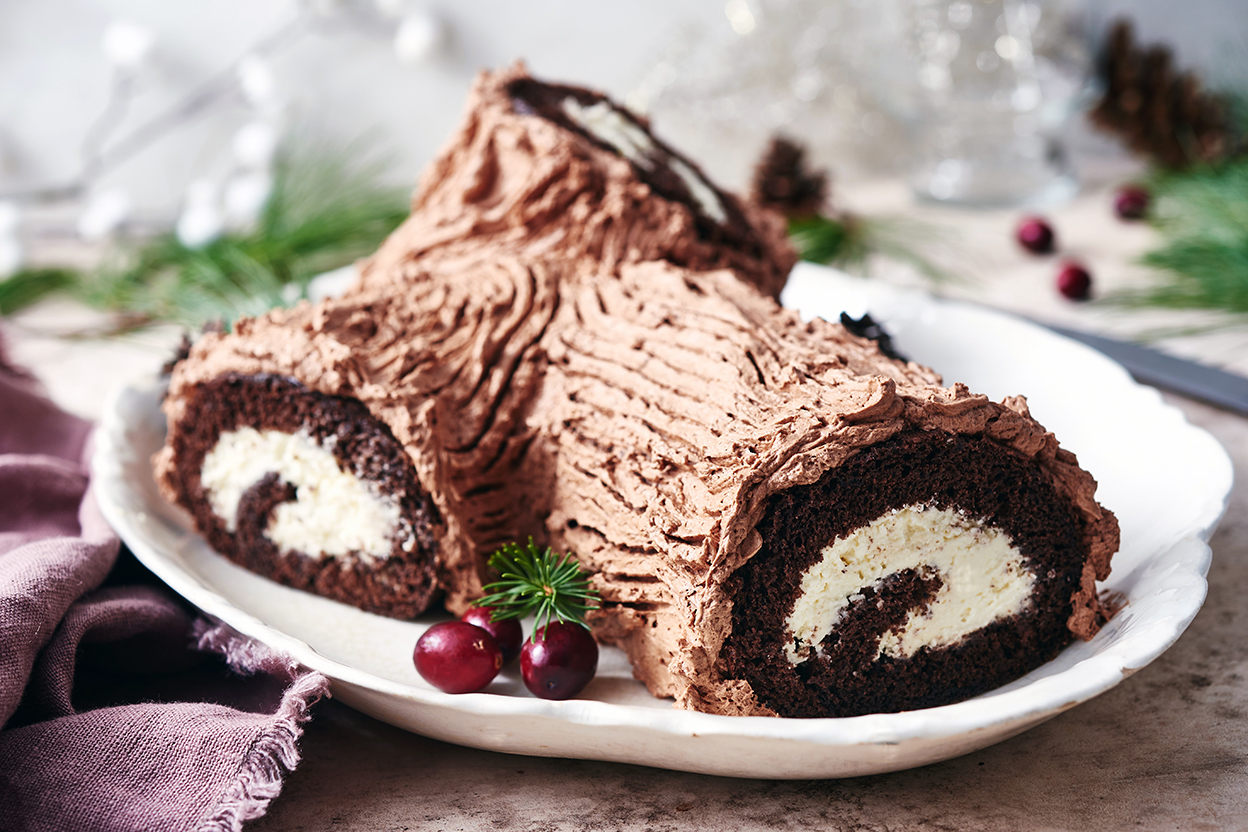 If you’re ready to roll, try our recipe for Classic Bûche de Noël, a reverse twist on Bûche de Noël (made with vanilla sponge cake), Gluten-Free Chocolate Yule Log, or this Almond Roll.