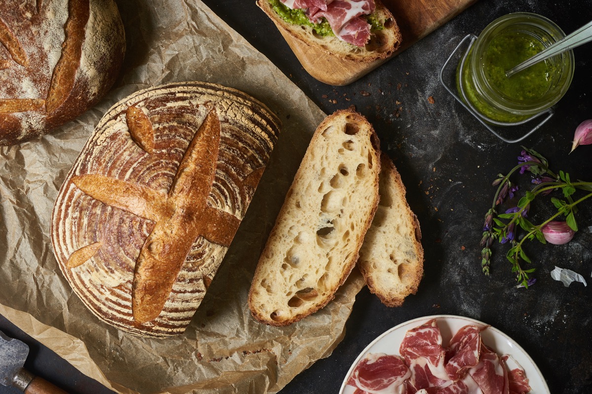 Immediate vs. delayed bake with refrigeration: Doing bulk fermentation (the dough’s initial rise) at a relatively warm temperature allows plenty of LAB growth, establishing the potential for a high concentration of organic acids. Refrigerating the shaped loaves before baking tends to shift the ratio of acetic acid to lactic acid produced, which can also provide more depth of flavor.
