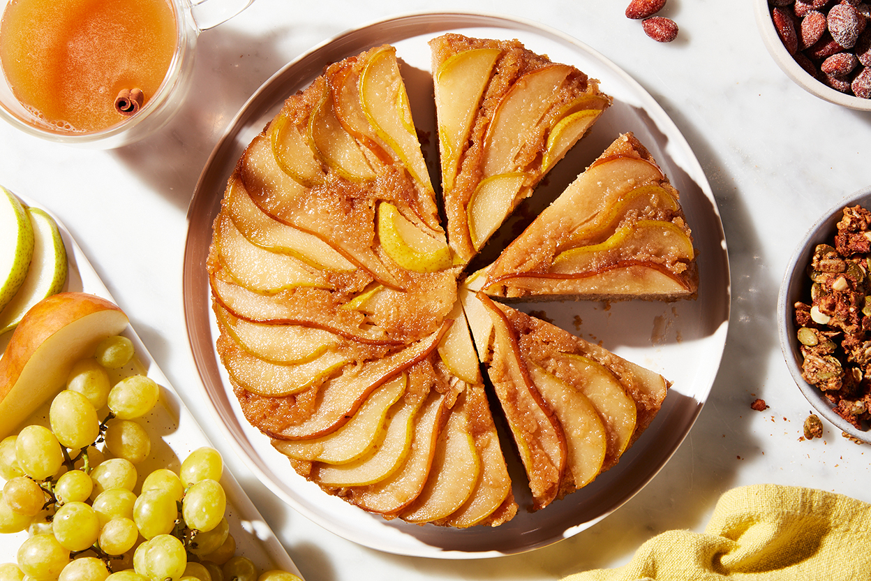 To celebrate, we’ve got cake! (What’s a celebration without cake, after all? As Julia Child said, probably just a meeting.) Not just any cake, either — it’s a sneak peek recipe from the book just in time for fall: Maple-Pear Upside-Down Cake.