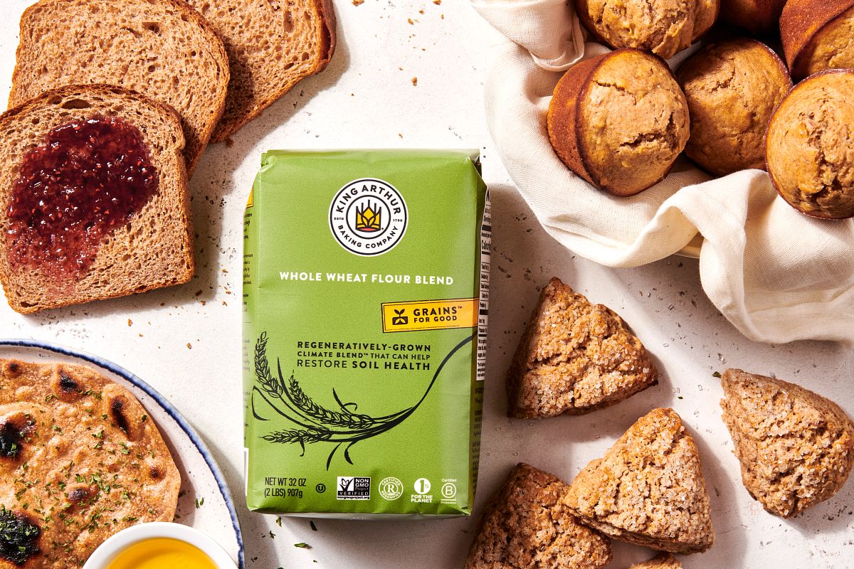 Support healthy soils, ecosystems, and farming communities by baking with flour milled from regeneratively-grown wheat. That includes our new Regeneratively-Grown Climate Blend Flour and our Golden Whole Wheat Flour, both of which are milled from wheat grown with regenerative agriculture practices like cover cropping and crop rotations, minimizing the use of chemical fertilizers, no/limited tillage, and more.