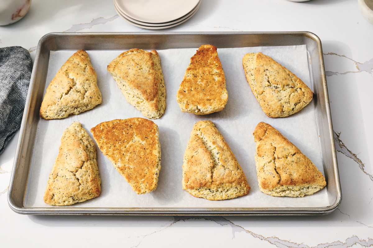 Most of the time, browning is a baker’s best friend, bringing caramelized depth of flavor, crunchy texture, and rich golden hues, all thanks to the Maillard reaction. However, excessive browning can compete with delicate flavors meant to shine — as in these Lemon Poppy Seed Scones. A crunchy bottom can interfere with the delicate structure of an otherwise tender sugar cookie, or dark color can overshadow an ethereal meringue.