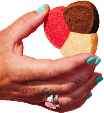 Polvorones are delightfully crumbly cookies (their name comes from the Spanish word for powdery) that are traditionally enjoyed year-round in Mexico and during Christmastime in Spain. This tricolor version from baker Isabel Coss features the flavors of orange, chocolate, and hibiscus in the form of soft and irresistibly buttery cookies.