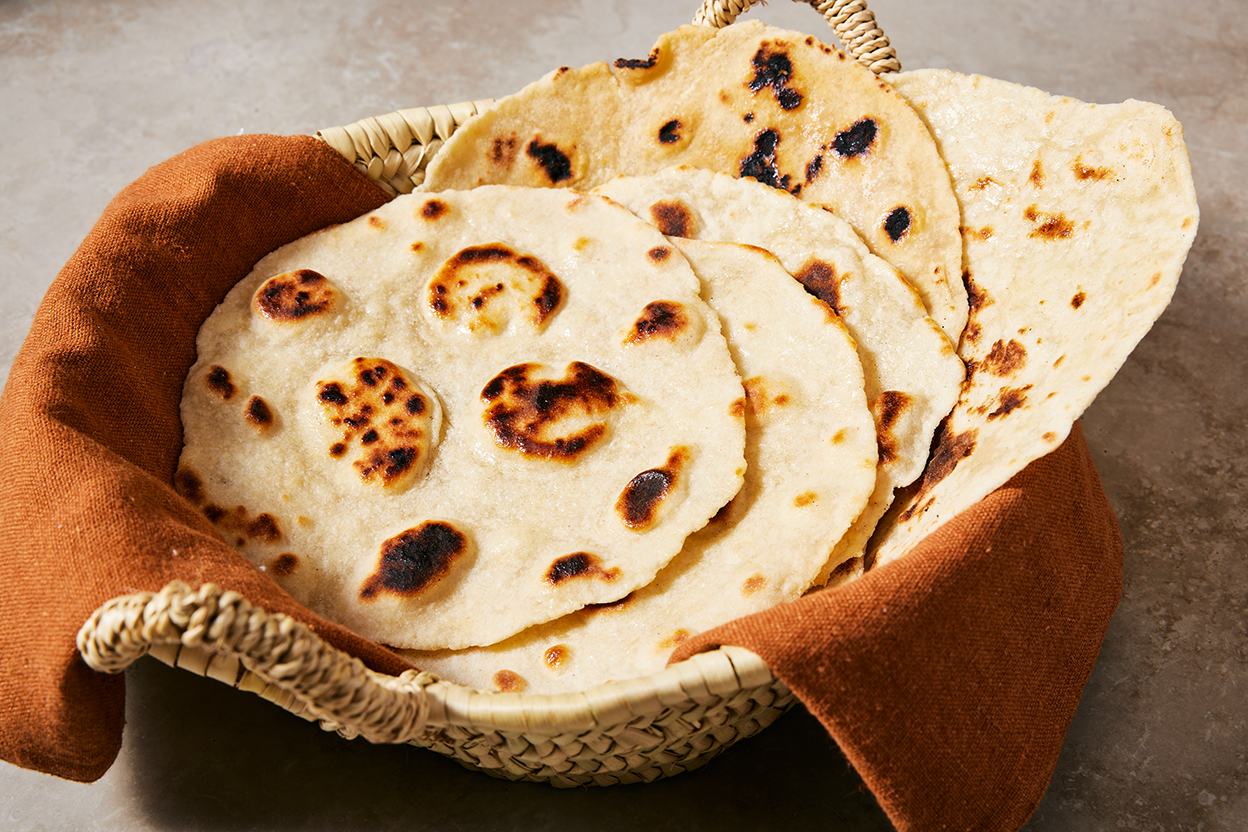 Made with equal parts masa harina and all-purpose flour, these chewy-yet-tender corn and flour tortillas have the deep, toasty flavor of fresh corn tortillas but the flaky, puffy richness of great wheat ones. Because they’re also easier to roll out than straight corn tortillas, you can make them large and thin without a tortilla press — a rolling pin is perfectly sufficient. Rip them apart while they’re warm and devour them plain, or use them for burritos, quesadillas, enchiladas, or breakfast tacos. They reheat beautifully in a skillet (for crispness) or a microwave (for soft pliability).