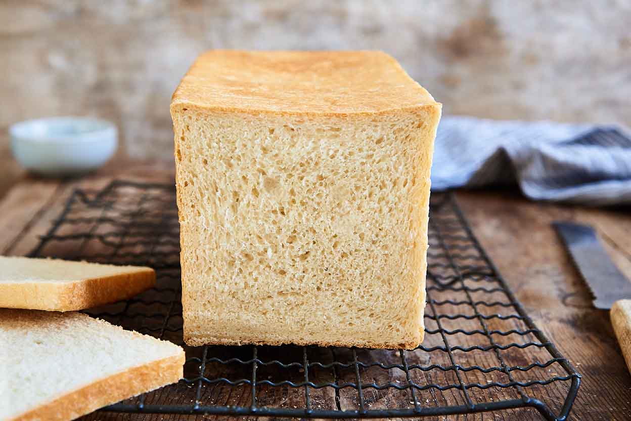 Gently deflate the dough, and shape it into a 9" log. Place it in a lightly greased 9" pain de mie pan. Cover the top of the pan with plastic wrap, to protect the dough as it rises.