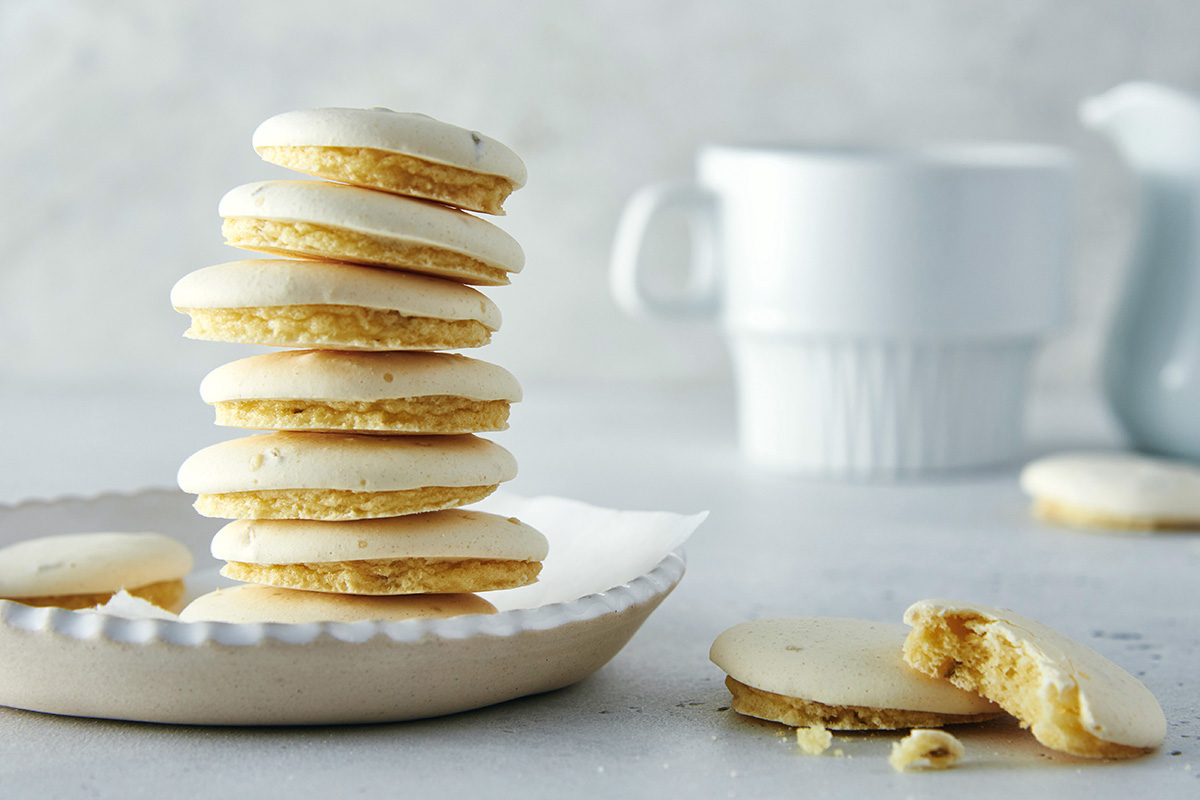 Germany, meet France! One bite into these flat, lighter-than-air crisp cookies (a.k.a. Self-Frosting Anise Drops), and you'll recognize the traditional licorice flavor of holiday Springerle. During the long rest period of the scooped cookies, however, some of the egg whites and sugar in the mixture will also have risen to their top surface to form a meringue-type layer that's absolutely reminiscent of French macarons.