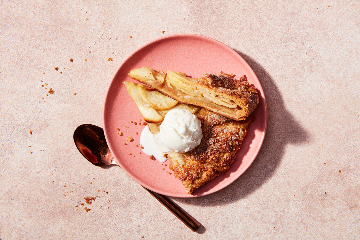This is rustic-yet-charming apple tart includes apples in two forms. The Golden Wheat Flour crust is flaky and tender from a good helping of sour cream, and a hidden layer of DIY apple butter adds a refreshing tang. It's the perfect addition to the table when your pie plates are occupied with pumpkin and pecan, but don’t be surprised if your future self decides to opt for this galette even when those pie dishes are free.