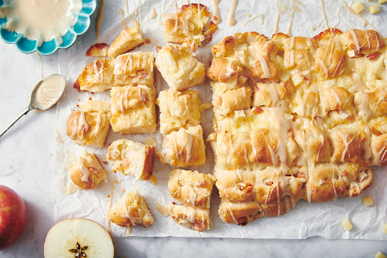 Filled with sweet apples and sharp cheddar cheese — we love Cabot extra-sharp — this easy pull-apart bread is perfect for parties — autumn or otherwise.