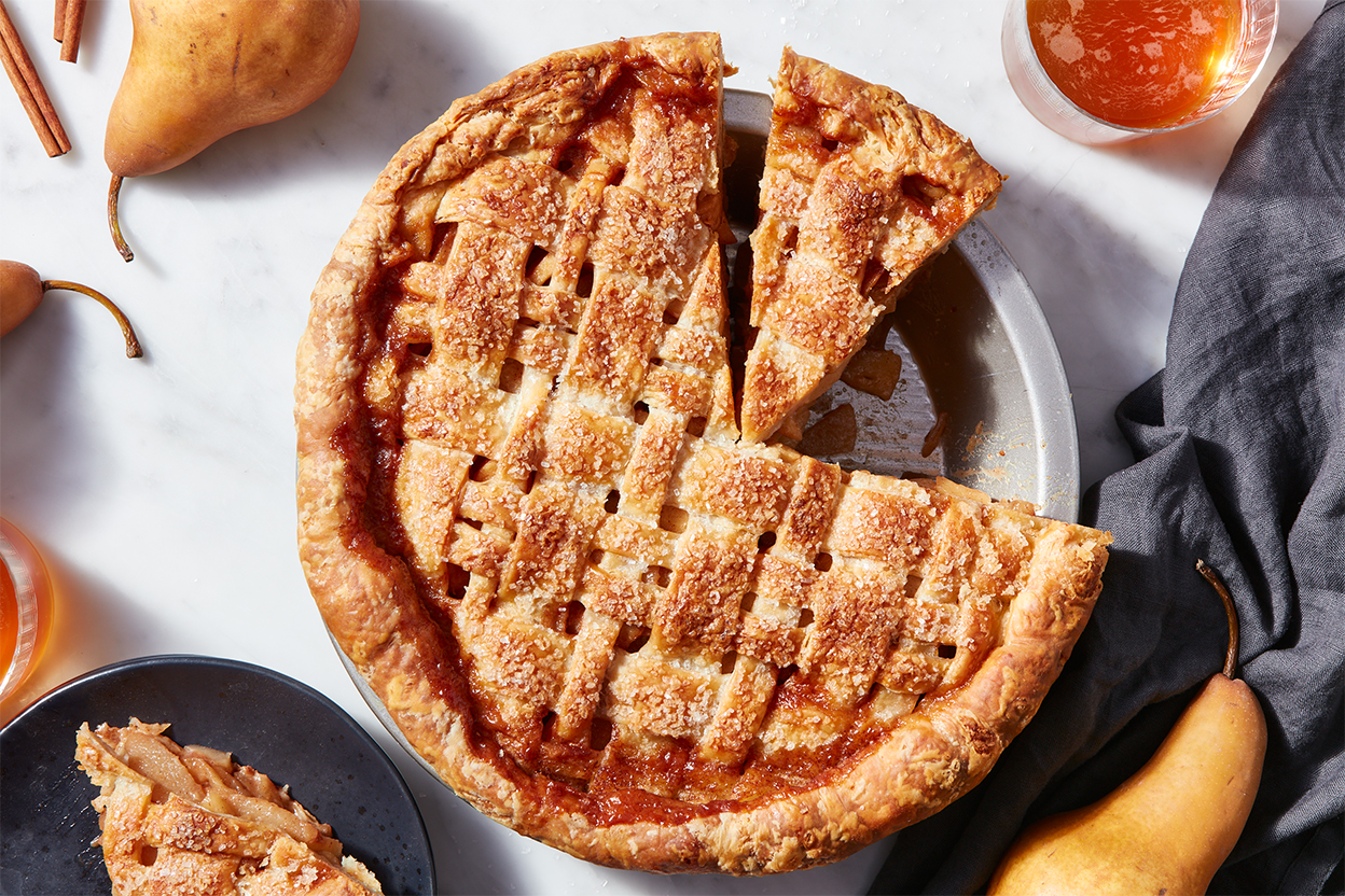 Featuring two of fall's essential harvest fruits, this pie is a true tribute to the season. The warm notes of Madagascar cinnamon, ginger, and vanilla enhance each fruit's individual flavor without being overpowering, yielding a pie that's balanced and comforting.