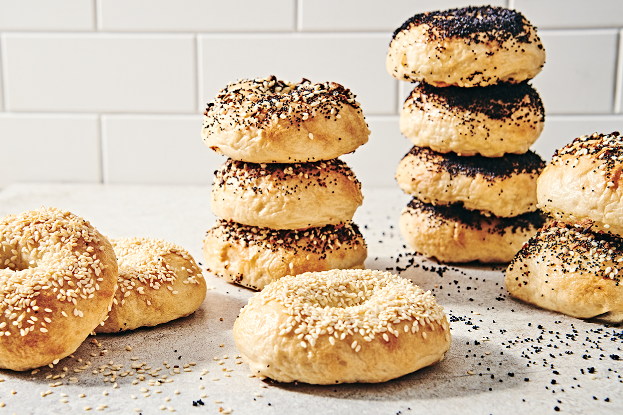 Smaller, taller bagels are light-textured, perfect for toasting, and make a lovely snack-sized serving. High-gluten flour makes them extra chewy.