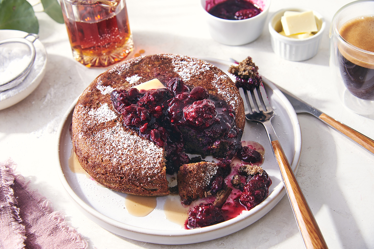 This generously sized single-serve pancake, made in part with buckwheat flour, is a fan favorite at Roxanna Jullapat’s Los Angeles bakery, Friends & Family. Featuring a crispy exterior and soft, fluffy interior — thanks to first frying on the stovetop, then finishing in the oven — the buttery, nutty flavors of the buckwheat flour truly shine. Thanks to Roxanna for sharing this recipe from her cookbook, "Mother Grains," with us.