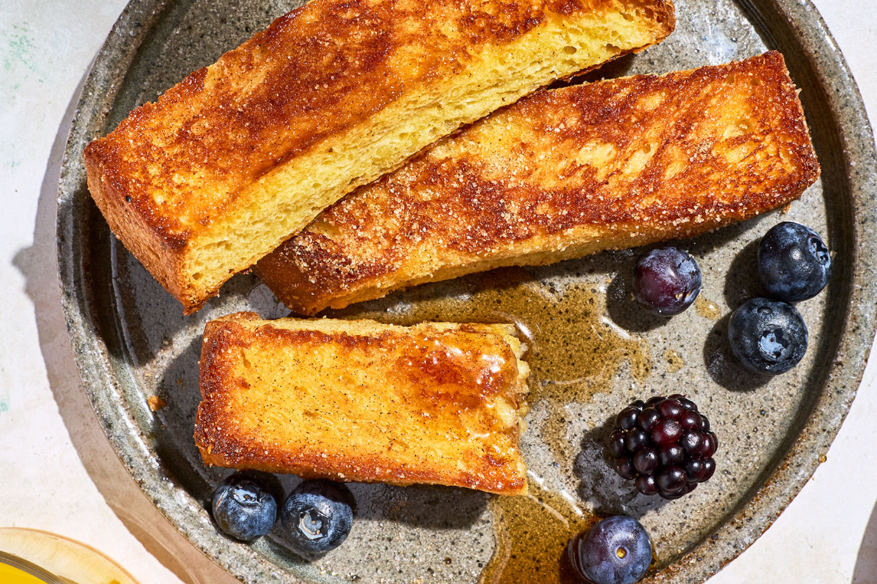 We’re going on the record: French toast sticks > French toast. Golden-edged, easy to dunk in maple syrup, and more delicious than anything you’d find in the freezer aisle, they’re the ideal on-the-go, make-ahead-friendly breakfast. Best of all, they’re baked (not pan-fried), so you can make a big batch without hovering over a skillet. A touch of cornstarch in the batter, a generously buttered baking sheet, and a hot oven all ensure that they'll still have crisp edges. For instructions on using an air fryer, see “tips,” below.