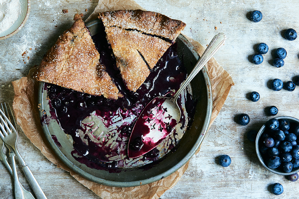 The crust here is made with whole wheat pastry flour, which results in a darker, less traditional crust; but its color harmonizes nicely with the dark purple-blue of the berry filling. If you're not keen about whole wheat pie crust, substitute your own favorite crust, or our Classic Double Pie Crust.