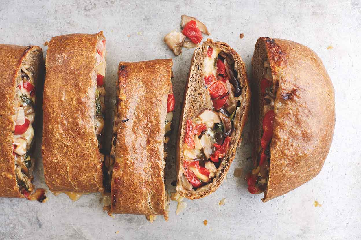After this rise, uncover and brush the stromboli with the beaten egg mixture and bake for 30 to 35 minutes, until the dough is set and just begins to take on some color at the edges. Remove from the oven and cool for 10 minutes before serving warm.