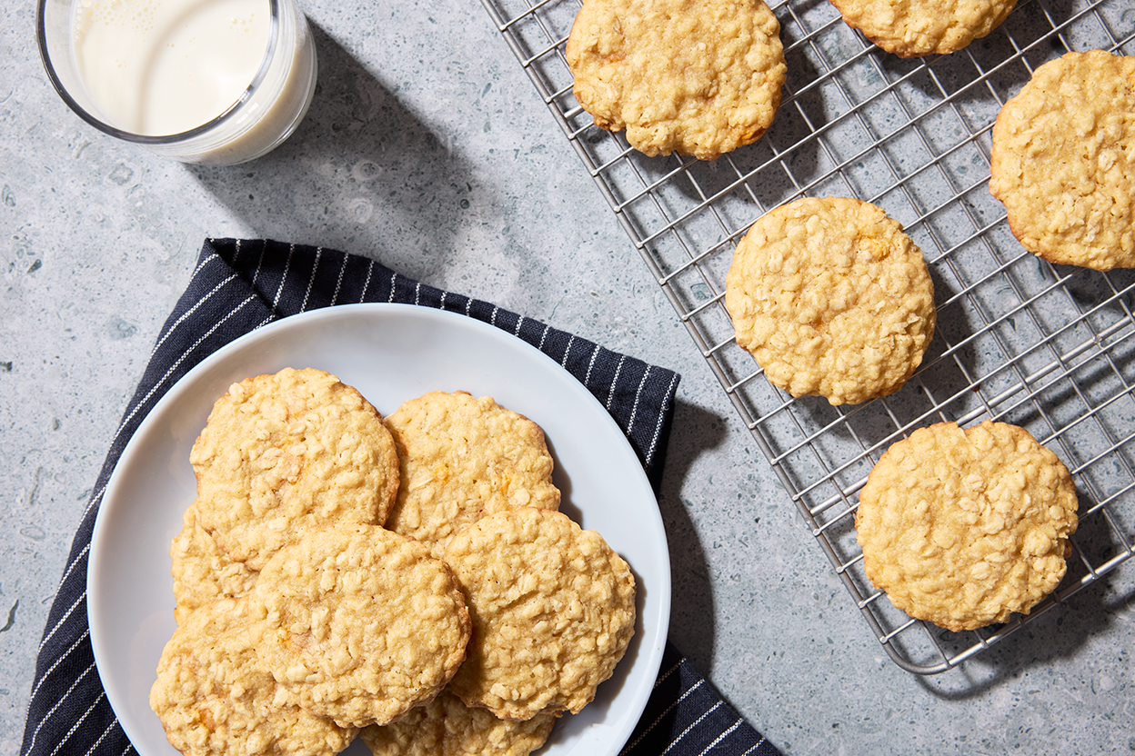 Packed with chewy oats and sweet butterscotch chips, these cookies are a welcome departure from oatmeal raisin or oatmeal chocolate chip. The recipe starts with our Butterscotch Blondie Mix, which means the ingredient list and the prep time is short as can be. Customize the texture of these oatmeal butterscotch cookies to your liking: Leave them in the oven for the full bake time for cookies that snap, or pull them out a few minutes early for softer, bendy cookies with chewy centers.