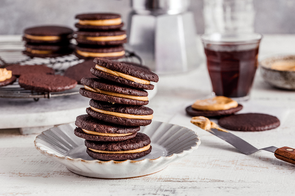 Chocolate and coffee — what a classic flavor combination! These sandwich cookies are guaranteed to please.