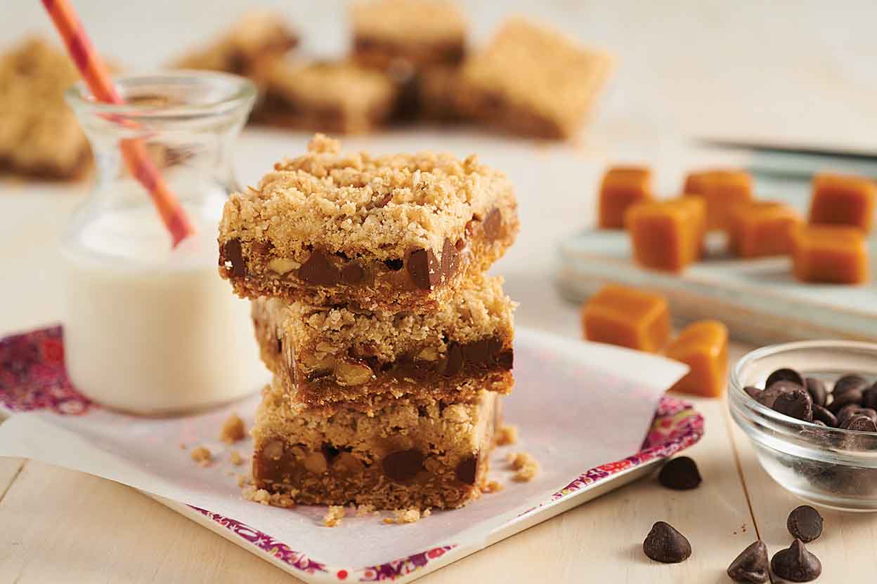 Not your ordinary layered bar, carmelitas sandwich a sticky caramel, chocolate, and pecan filling between two layers of buttery, streusel-like shortbread studded with oats. Their variety of both flavors and textures make them an irresistible temptation and an easy crowd-pleaser.