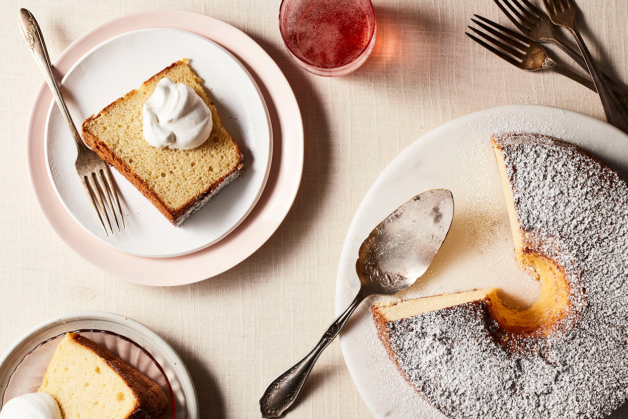 Classic chiffon cake combines the cloudlike texture of angel food cake with a tender richness provided by egg yolks and oil. Serve chiffon cake with a light dusting of confectioners' sugar and a scattering of fresh berries for a simple but elegant presentation. It also maintains its beautifully soft texture even when chilled, so it's also a great candidate for any type of filling or topping that needs refrigeration, e.g., whipped cream, pastry cream, or mousse.