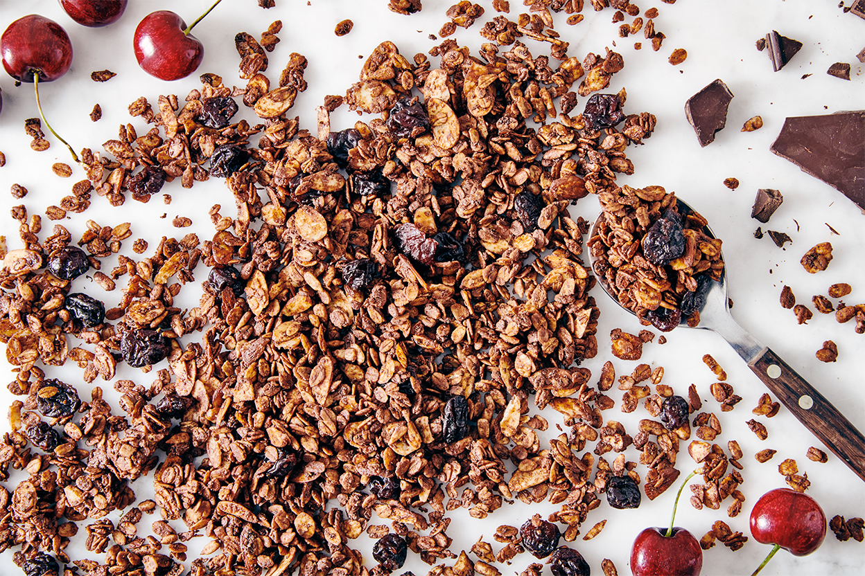 A bowl full of this chocolate-y morning treat is sure to provide you with a healthy dose of antioxidants. Serve the granola with milk and watch the magic happen.