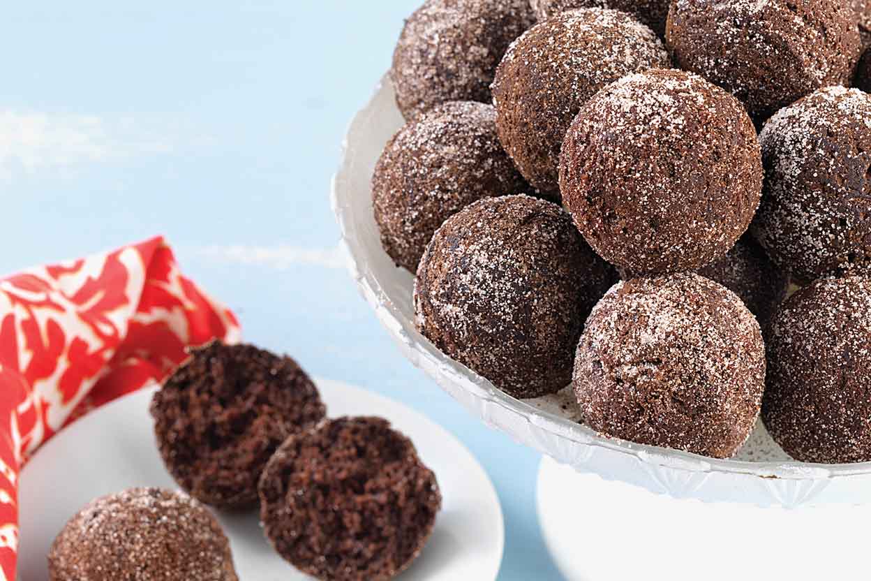 These moist and dense cake-style doughnuts with their deep-dark chocolate flavor will start any chocolate lover's morning off right. Their rich, fudge-like texture and pockets of melted chocolate also make them suitable for a decadent bite-sized snack or dessert; but be warned that you may not be able to stop at just one!