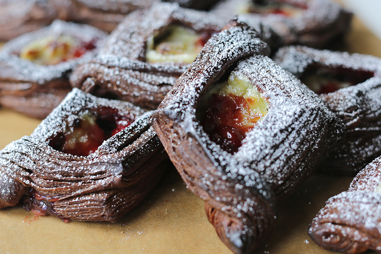 Bake the Danish for 18 to 20 minutes, until their edges are set and the cocoa is fragrant. Remove them from the oven and allow them to cool a bit before serving; their structure needs a chance to set.
