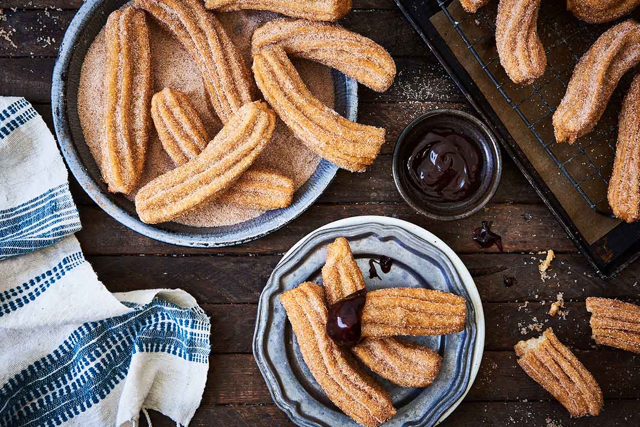 Churros, mildly crunchy, tender sticks of fried dough, are a typical breakfast treat in many Hispanic countries. Interestingly, these light, crisp "Mexican crullers" get their rise not from yeast, not from baking powder... but from eggs.