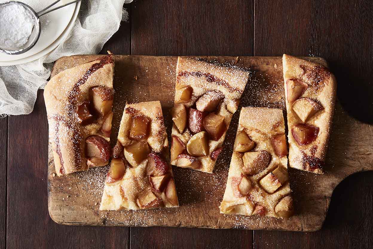 To make the topping: Mix 1/4 cup of the reserved apple juice with 1/4 cup Baker's Cinnamon Filling or 1/4 cup cinnamon sugar. The Baker's Cinnamon Filling will yield a richer, creamier topping. Drizzle the syrup over the apples.