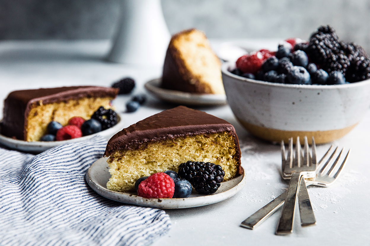 What makes this cake classic? In our book, a "classic" yellow cake (think '60s box-mix style, like Mom used to make) is marked by its pleasing moistness, its easy sliceability (no crumbling, please) and simple vanilla flavor. To top it off, this yellow cake is coated in a blanket of rich, fudgy frosting, completing the traditional vanilla-chocolate duo.