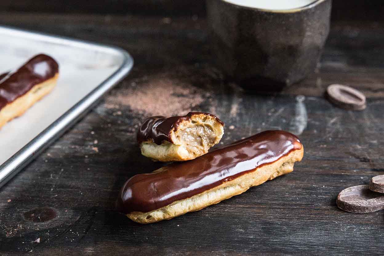This twist on classic chocolate éclairs pairs buttery pastry shells and coffee-flavored pastry cream. The rich chocolate-espresso icing is a perfect final touch. Our thanks to Kristin Rosenau of Pastry Affair for this recipe.