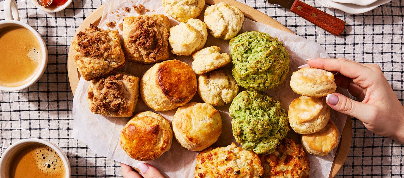 Once you’ve graduated from the basic biscuit, it’s time to master fresh riffs like Green Goddess Biscuits, inspired by the herbaceous salad dressing, and Coffee Cake Biscuits, made supremely soft and tender with cake flour. Bake all 12 until you find your favorite texture and flavor combination — and don't hesitate to put your own spin on any of the biscuit recipes below.