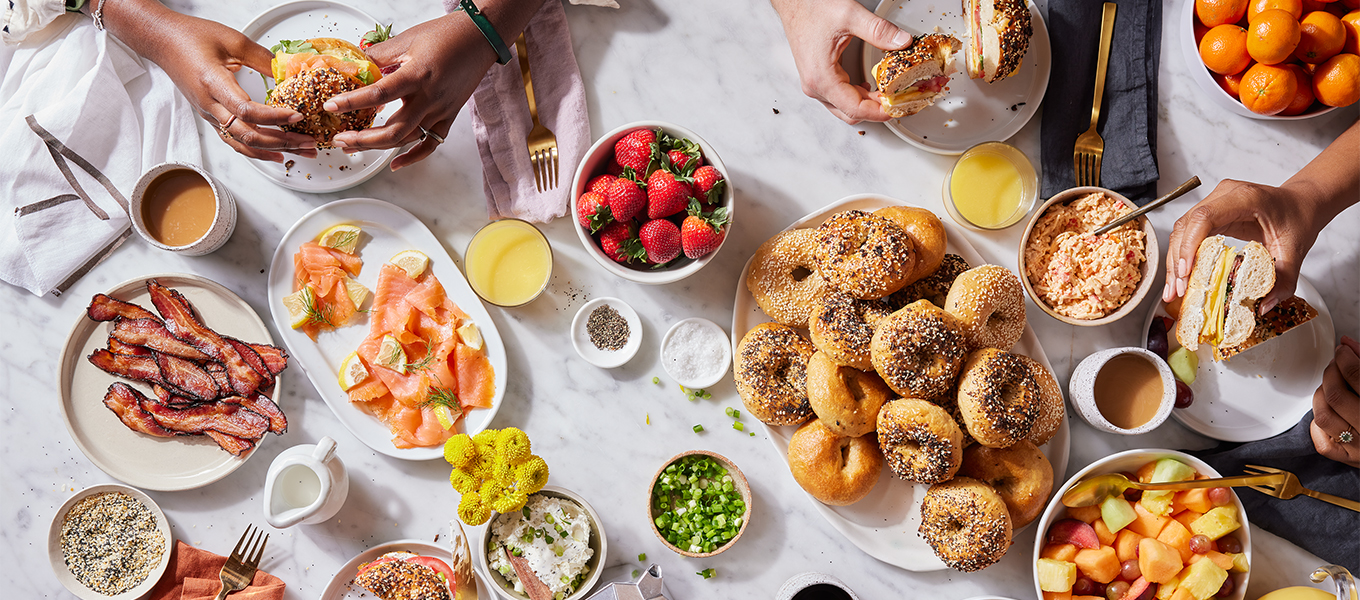 For a hearty, savory main dish, consider a quiche-like tomato pie or bagels complete with a build-your-own bar of fillings from lox to avocado to tomato. Of course, there’s also the roster of sweeter classics, from buttermilk pancakes (made easy with a mix!) to sticky buns that make day-of prep easier, thanks to a no-knead method.