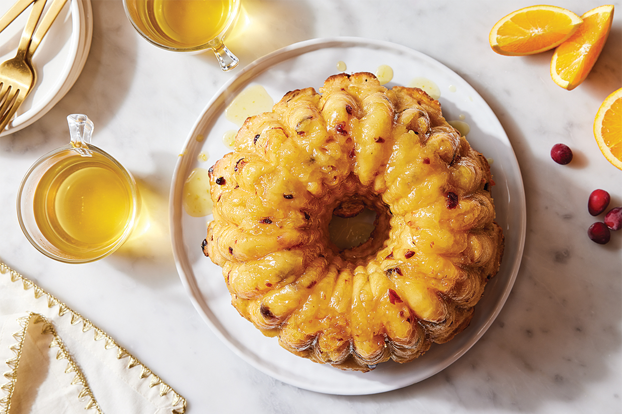 Pour the glaze into the pan over the dough, then place pan on a baking sheet in case the glaze bubbles and overflows from the pan.