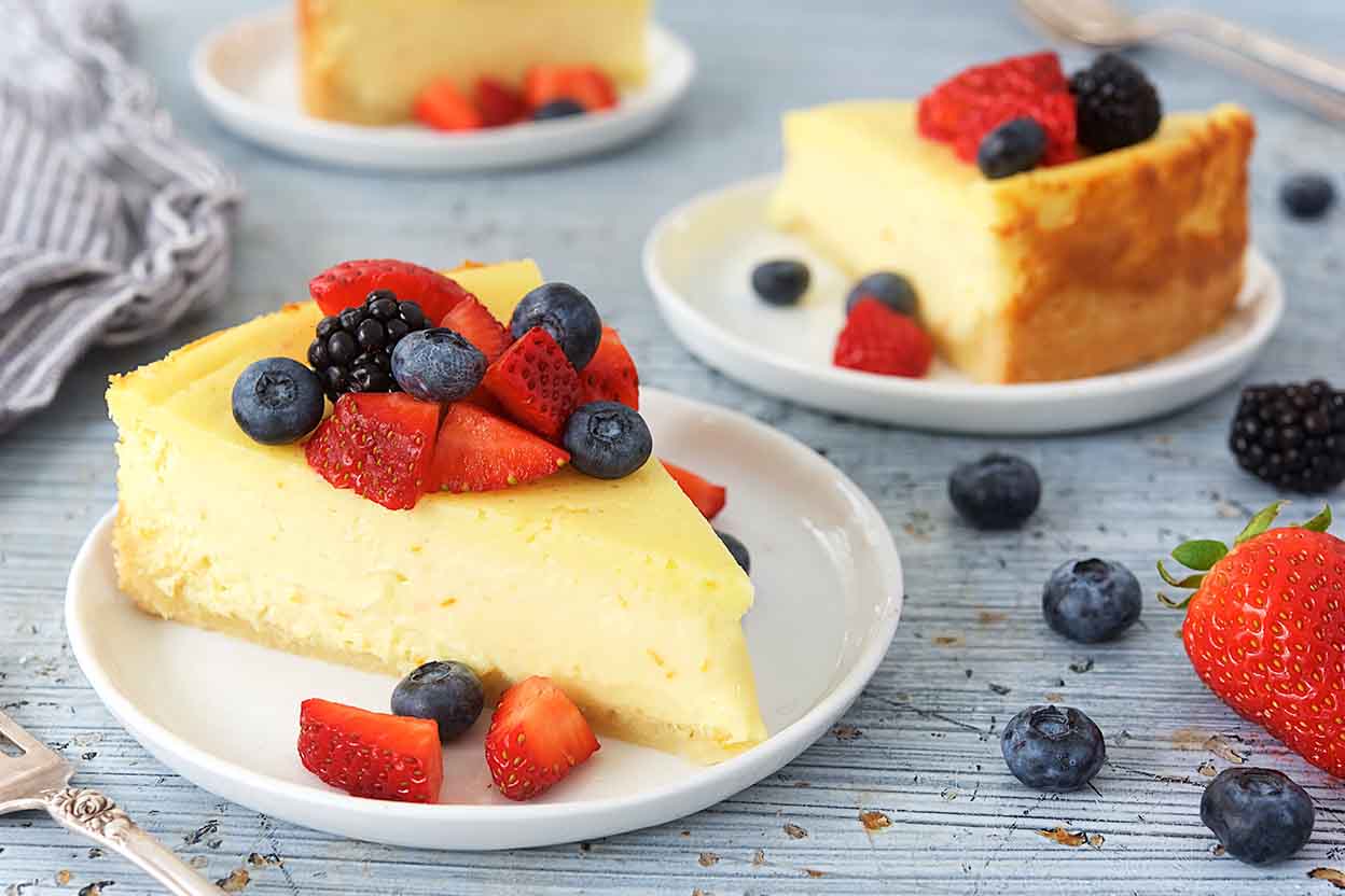 This "Creamsicle®" cheesecake features vanilla extract plus Fiori di Sicilia and orange zest, giving it wonderfully bright flavor. It's perfect topped with summer fruit.