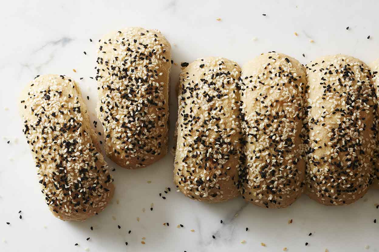 The loaf is either deeply slashed before baking, or formed by placing balls of dough next to each other on the pan. The result? Easy to pull apart "fingers" of dough, making this a great "pass-around" loaf.