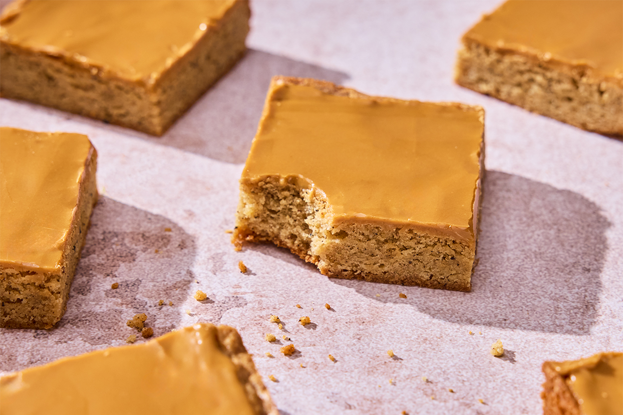 A dirty chai latte combines the warm, spicy flavor of chai with the bold bitterness of espresso. Now you can embrace the winning combination in dessert form with this easy, one-bowl recipe. Use an aromatic chai-flavored black tea to make fragrant, robustly-flavored bars, then coat them in a thin layer of espresso glaze. Customize the bars to reflect how you like your drink using the “tips,” below.