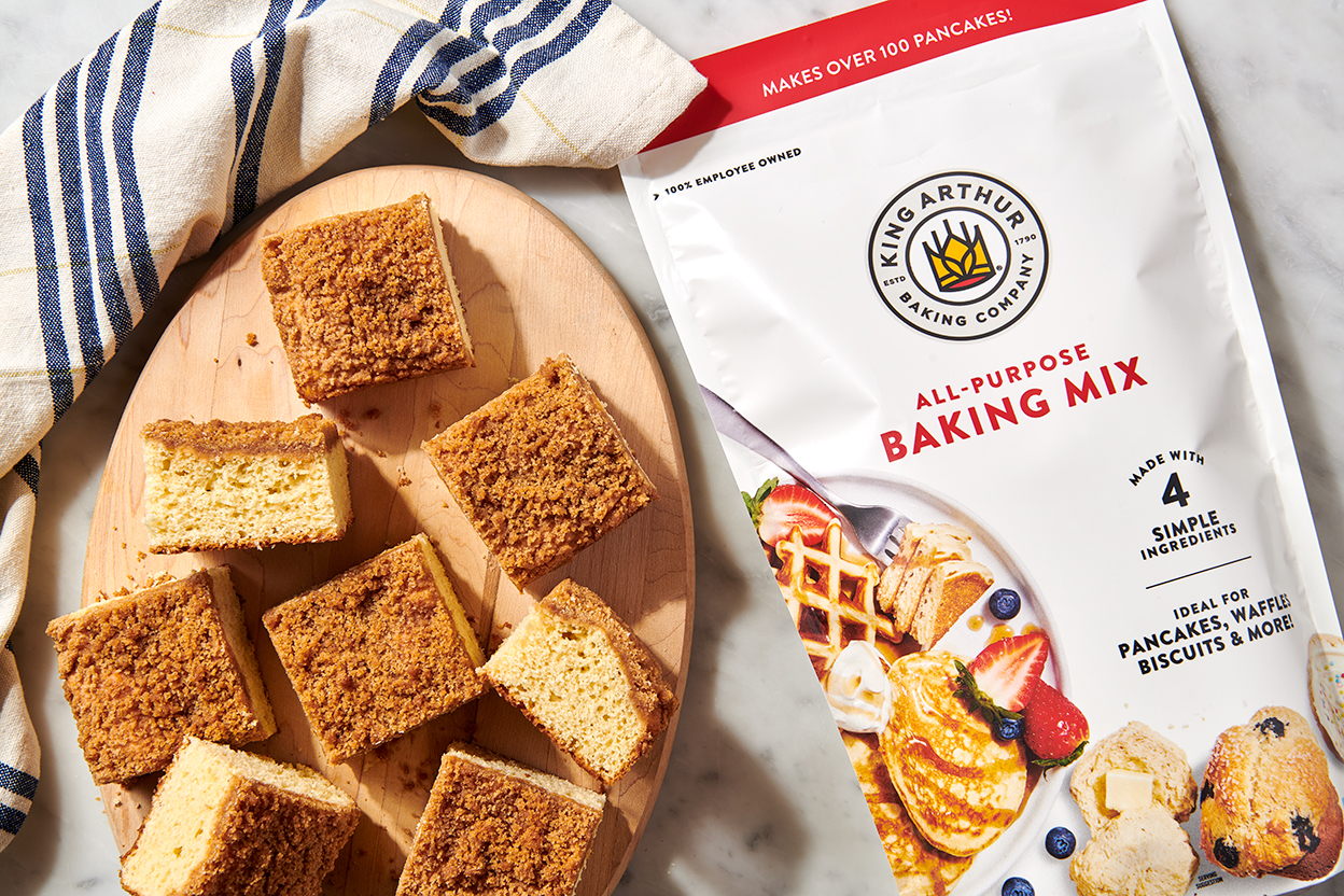 Made with King Arthur All-Purpose Baking Mix and a few kitchen staples, this warm, comforting coffee cake comes together in less than an hour, start to finish. Better still, no mixer is required. This easy coffee cake recipe is great for last-minute houseguests, or just your average Tuesday.