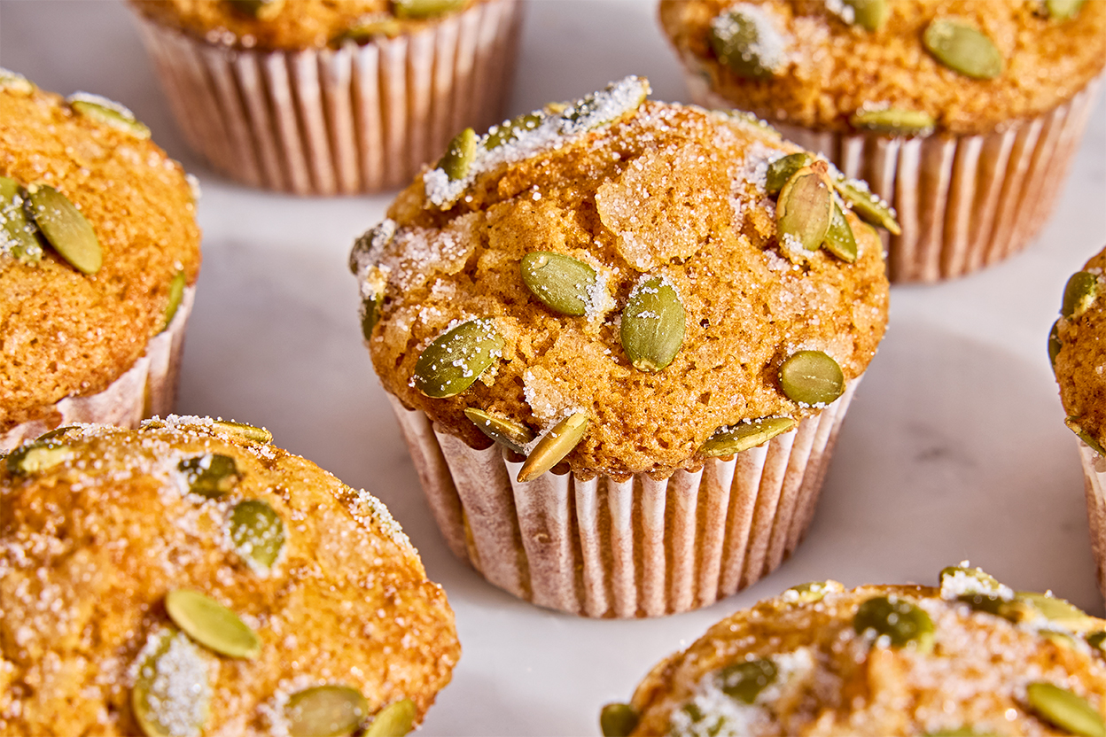 If you’re looking for a way to make your whole kitchen smell like fall, these one-bowl, easy pumpkin muffins deliver — and fast. They’re ready in under an hour, so you can spend less time measuring, mixing, and cleaning and more time tackling your autumn bucket list. The pumpkin seed topping is optional but highly recommended; it brings a welcome crunch and a nutty flavor.
